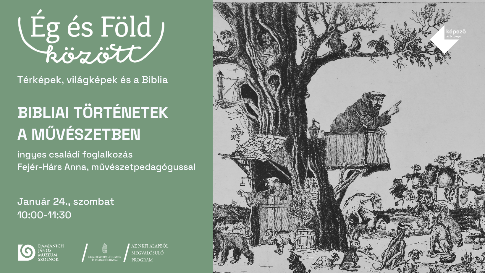 Az Ég és Föld között című kiállításhoz kapcsolódó ingyenes művészetpedagógiai foglalkozáson 1–12. osztályos diákok fedezhetik fel, hogyan formálódik a Biblia és a művészet kapcsolata a különböző korokban. A középkori kódexek, reneszánsz oltárképek és barokk festmények után a 20. századi grafikusok – Ágotha Margit, Gácsi Mihály és Rékassy Csaba – különleges képi világán keresztül nézünk rá új szemmel a régi történetekre.
