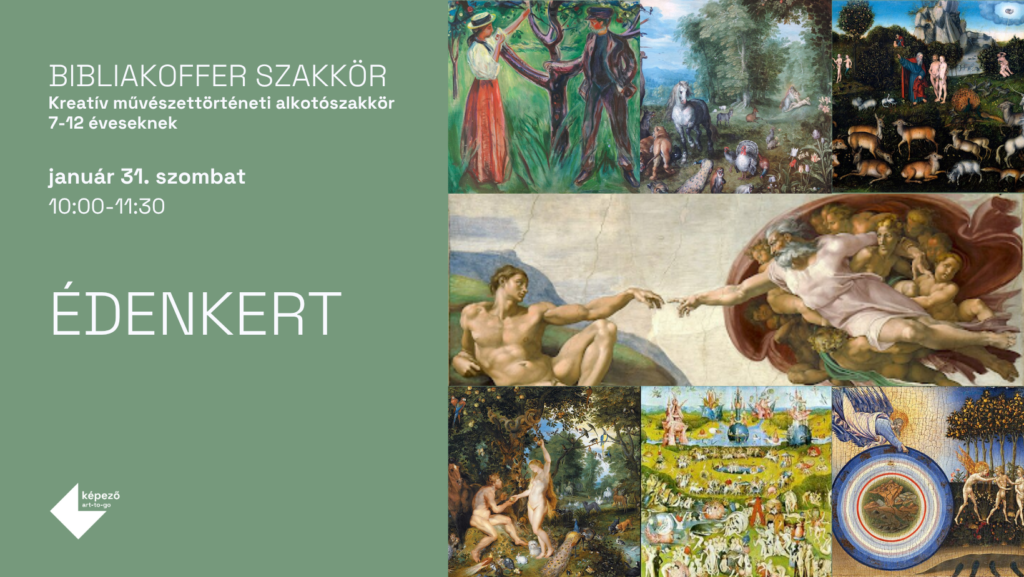 A foglalkozás játékos és művészeti élményeken alapuló utazás az emberiség történetének egyik legszebb és legrejtélyesebb helyére. A résztvevők felfedezik az Édenkert hangulatát, színeit és szimbolikáját, majd megismerik Ádám és Éva történetét a teremtéstől egészen a kiűzetésig. A foglalkozás során olyan kiemelkedő műalkotások segítenek elmélyülni ebben a világban, mint Michelangelo híres freskója, Dürer részletgazdag metszetei, Bosch különleges, fantáziadús ábrázolásai és mai kortárs művészek újraértelmezései. A gyerekek interaktív játékokon, közös gondolkodáson és kreatív alkotófeladatokon keresztül élhetik át a történet üzenetét, miközben megtapasztalják, hogyan jelenik meg ugyanaz a bibliai esemény különböző korok és stílusok művészetében. A foglalkozás élményszerű, inspiráló és gondolatébresztő módon hozza közel az Édenkert történetét minden résztvevőhöz.