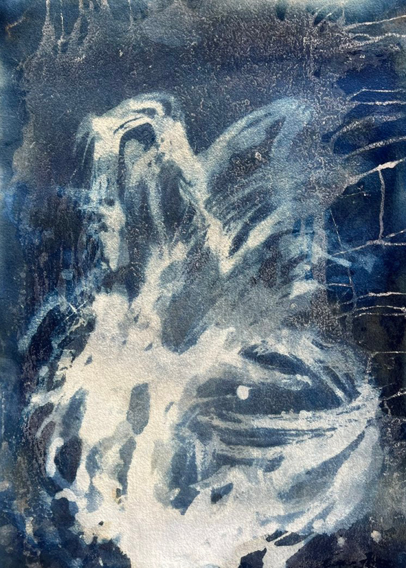 Ezek a művek nem a természet ábrázolásai, hanem a természettel való együttlét lenyomatai. Az anyag, a víz, a föld nem pusztán eszköz, hanem egyenrangú szereplője a folyamatnak. A képek a helyszín szívéből születnek– ősi erők és személyes gesztusok találkozásának nyomán.