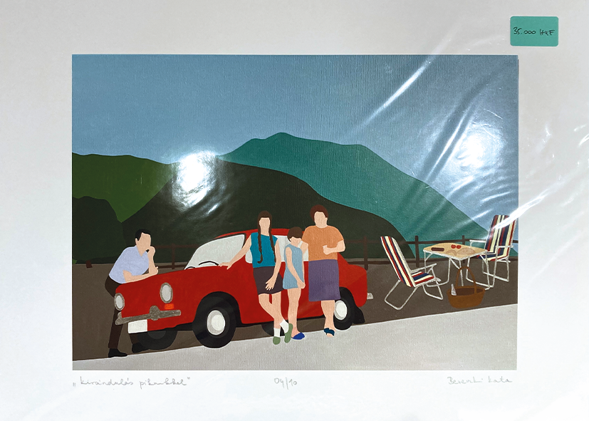 - “Kirándulás piknikkel” – Bereczki Kata “Kirándulás piknikkel” című festménye (2022, akril, vászon, 50×70 cm) alapján.