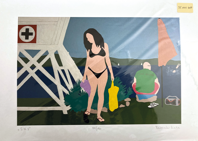 - “S.O.S.” – Bereczki Kata “S.O.S.” című festménye (2024, akril, vászon, 60×90 cm) alapján.